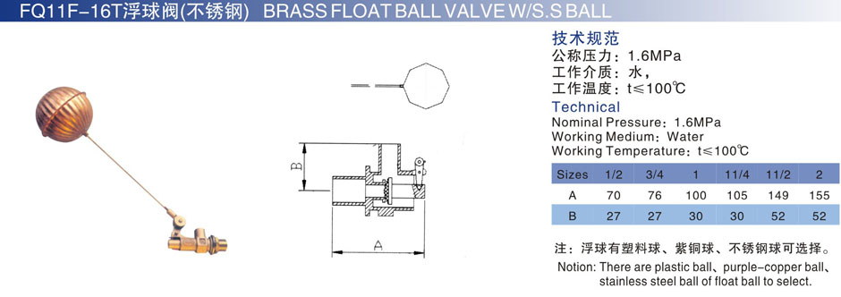FQ11F-16T浮球阀(不锈钢)
