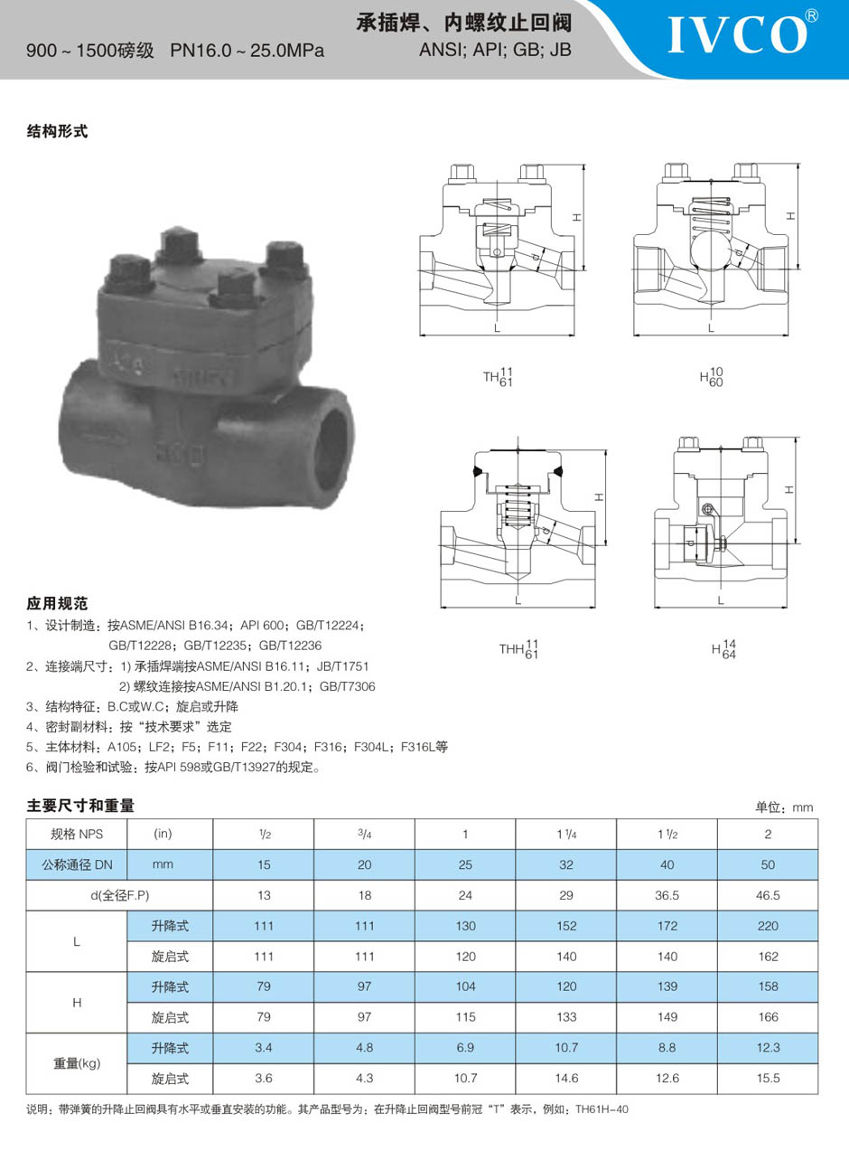 900-1500LB锻钢承插焊、内螺纹止回阀