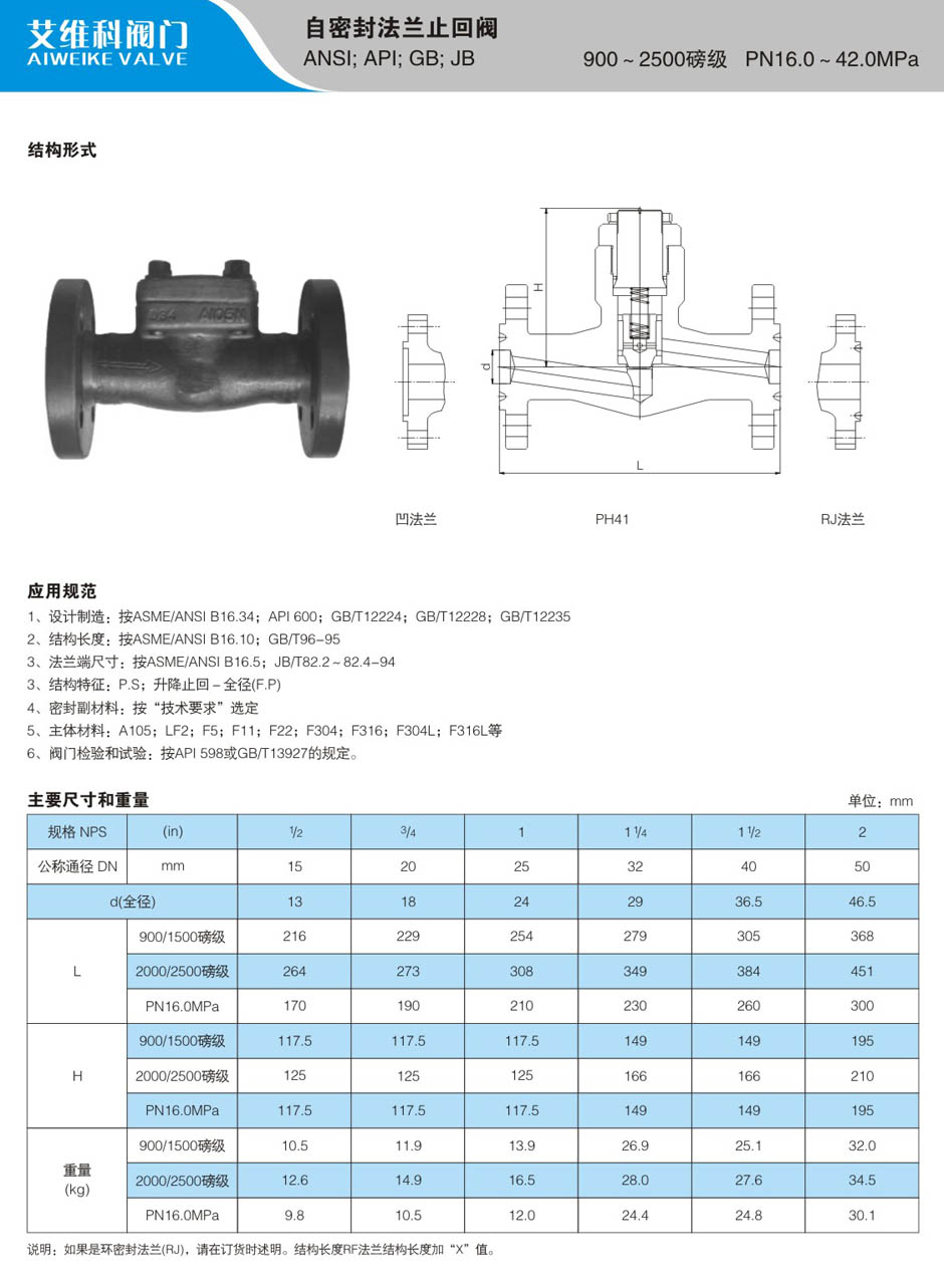 900-1500LB锻钢承插焊、内螺纹止回阀