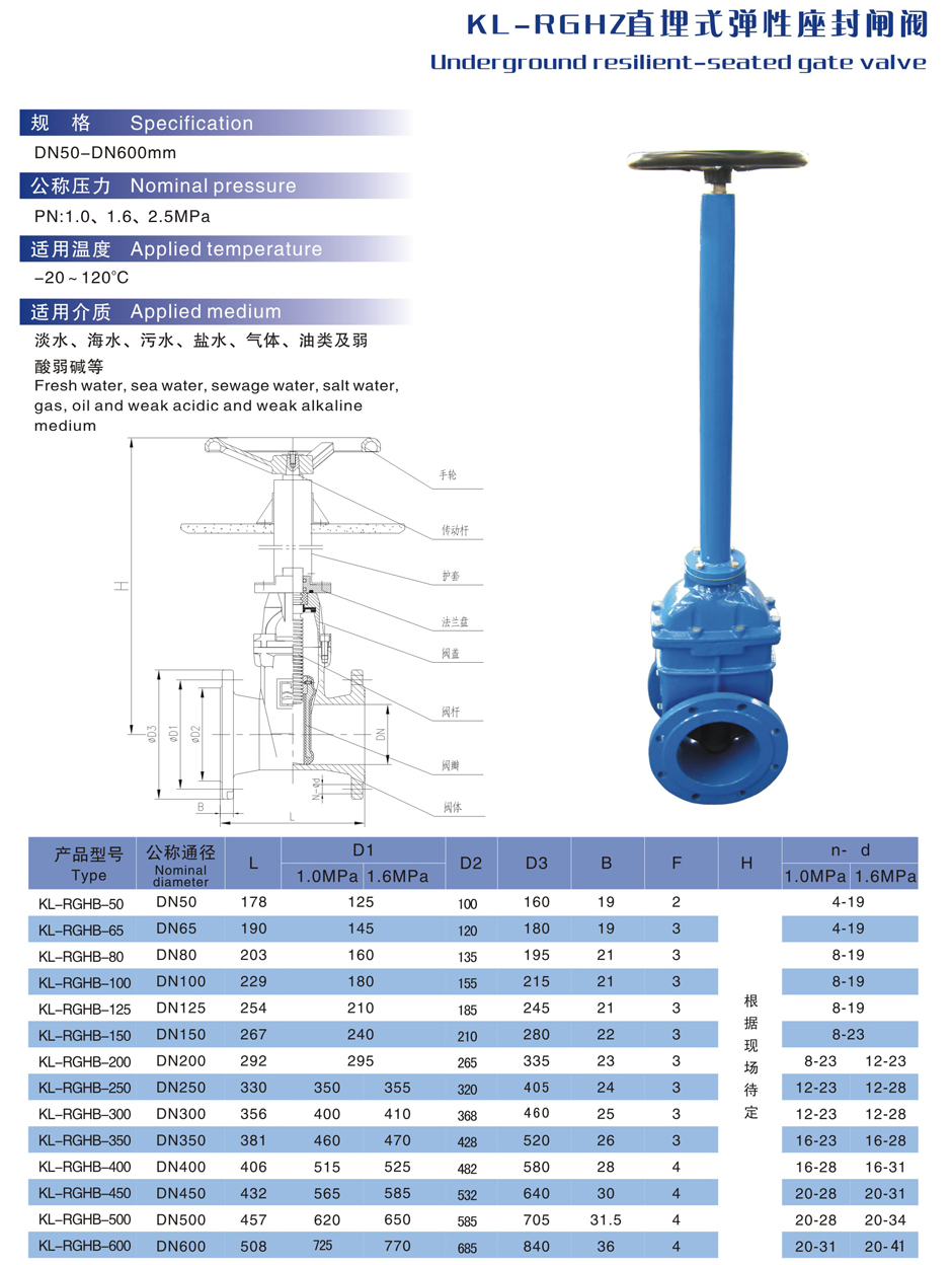KL-RGHZ直埋式弹性座封闸阀