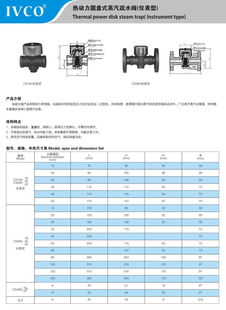 热动力圆盘式蒸汽疏水阀(仪表型)