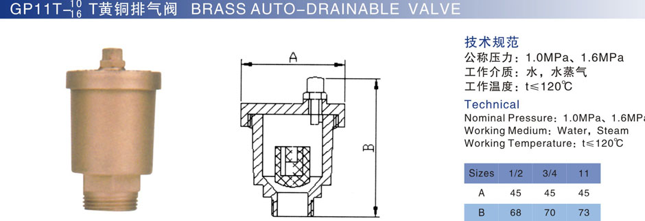 GP11T-10/16T黄铜排气阀