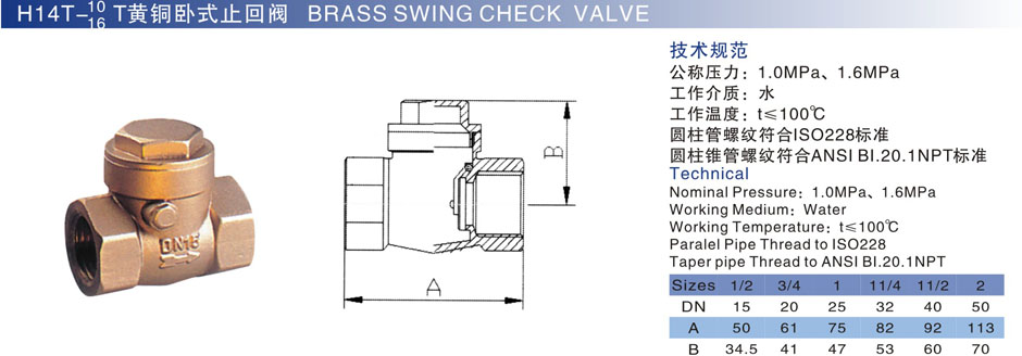 H14T-10/16T黄铜卧式止回阀