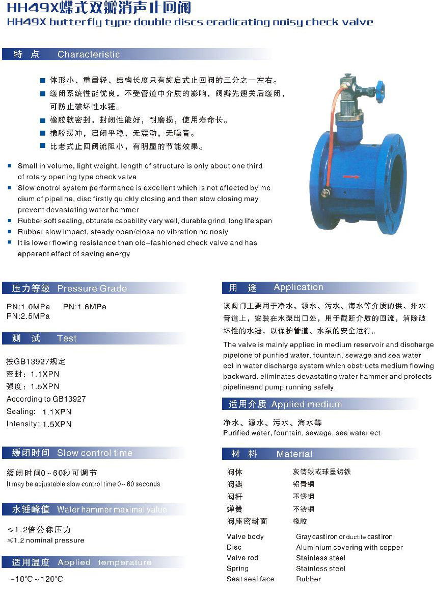 HH49X蝶式双瓣消声止回阀
